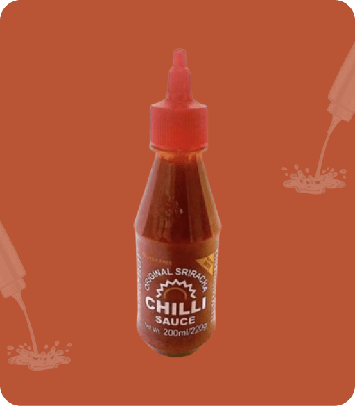 - Water 28.90%, Red Chilli 28%, Sugar 25%, Garlic 7%, Salt 5%, Stabilizer (Xanthan Gum) 4.40%, Thickener (Modified Corn Starch) 1%, Acidity Regulator (Acetic Acid) 0.55%, Preservative (Sodium Benzoate) 0.10%, Natural Colour (Paprika Oleoresin) 0.05%