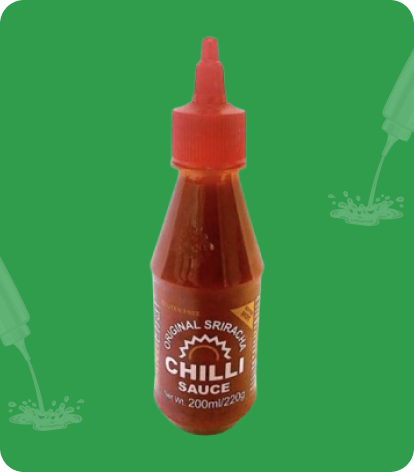 - Water 52.25%, Sugar 23%, Garlic 2%, Thickener (modified corn stratch) 2%, acidity regulator (acetic acid) 0.60% colour (Paprika oleoresin) 0.12%, oleoresin capsicum 0.03%