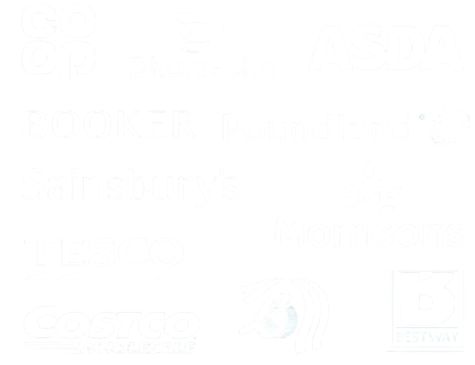 are available at most supermarkets, Independent stores and wholesale cash and carry.