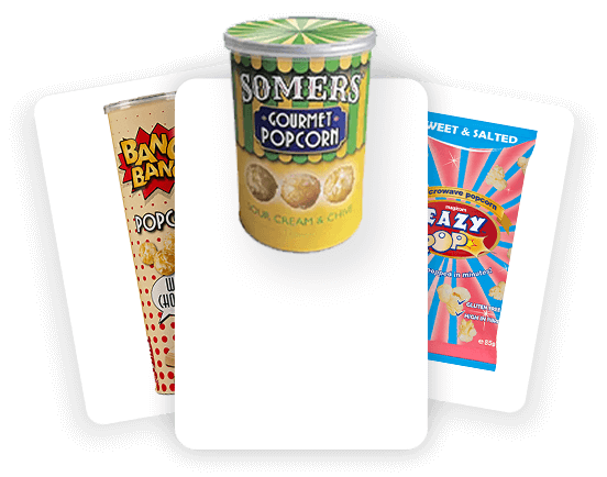 The latest snack sensation, offering a striking twist on traditional popcorn. We introduce savoury gourmet flavours including Sour Cream and onion, Tomato and Bombay mix, all in circus themed tubes.